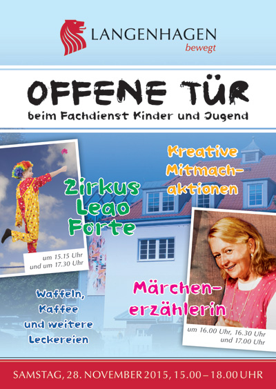 Am Samstag, den 28. November 2015, von 15.00 bis 18.00 Uhr laden wir alle Kinder, Jugendlichen, Eltern, Großeltern, sowie alle an der Langenhagener Kinder- und Jugendarbeit Interessierten zu uns ein. Wir stellen die sanierten Räume im Haus der Jugend vor und geben einen Einblick in die Angebote vom Fachdienst Kinder und Jugend. Selbstverständlich gibt es auch ein paar kleine Highlights und viele Sachen zum Mitmachen und Ausprobieren.